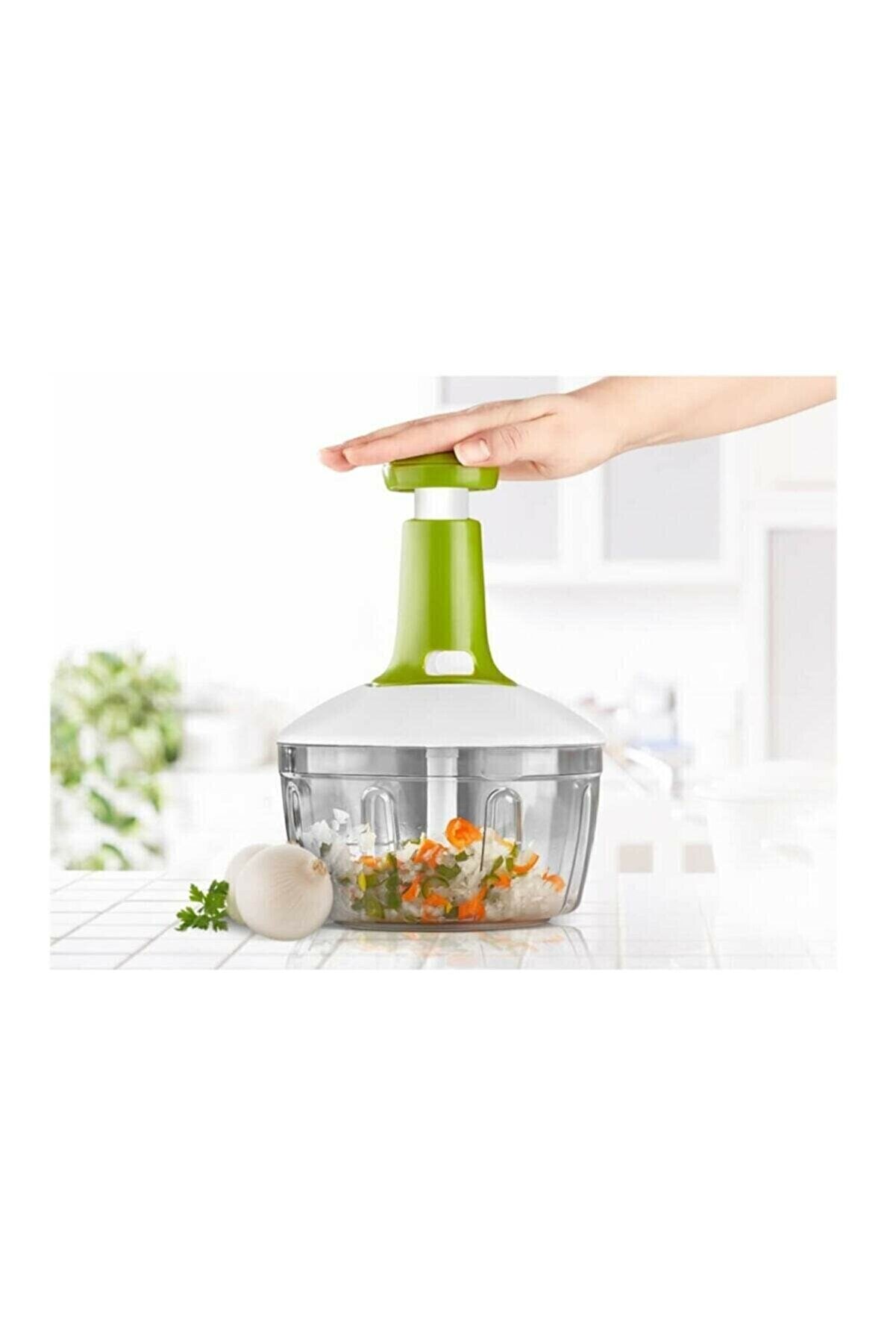 Manuel Üstten Basmalı 3 Bıçaklı Kilitlenebilir Meyve Sebze Doğrayıcı El Rondosu